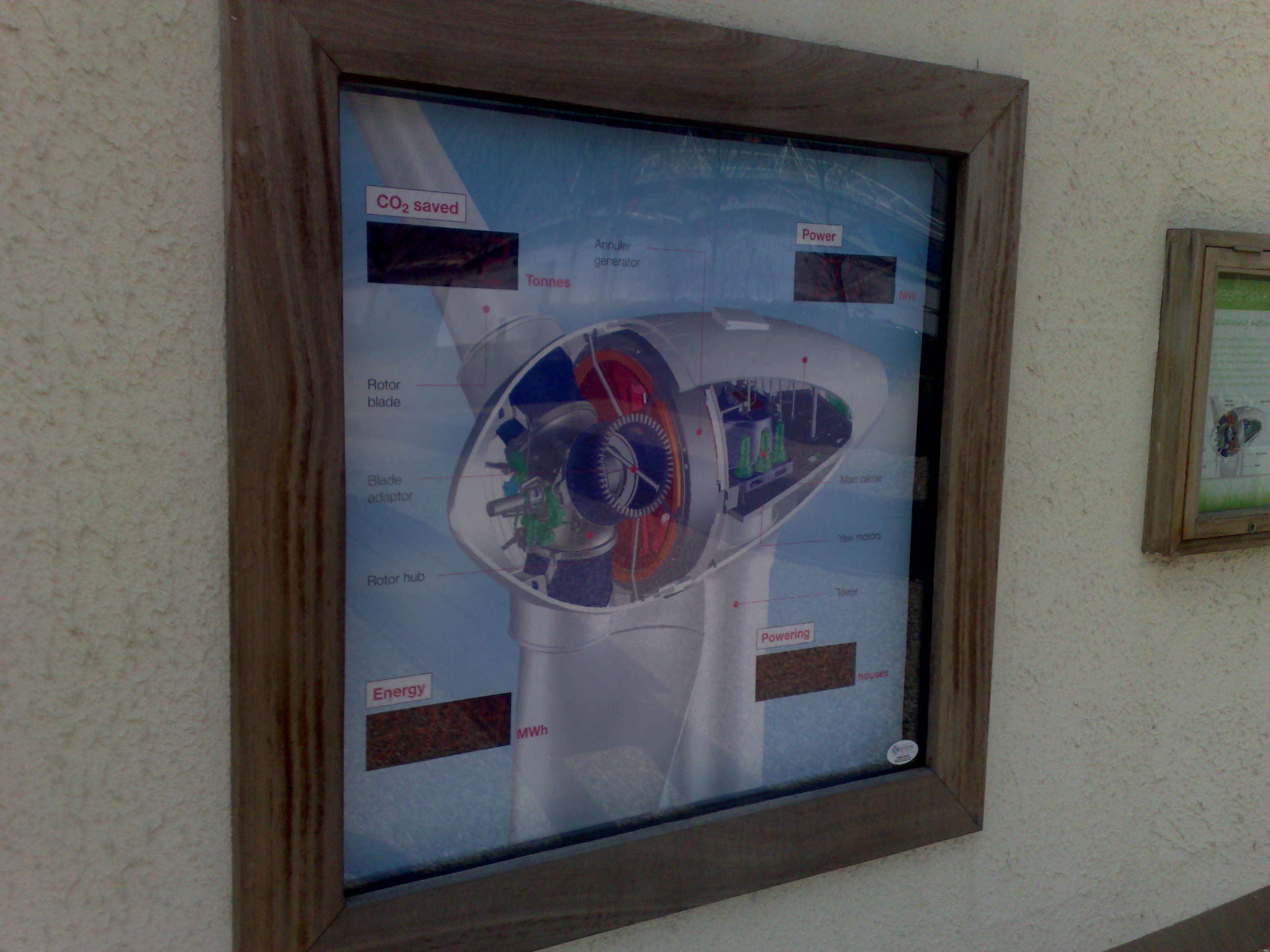 What was quite interesting was the way this turbine works. There is no actual gearbox in there, apparently the 'Annular Generator' is driven by the blades directly. I assume that this must be a DC generator which then feeds a large invertor (there were some large green enclosures round the back which made a fairly high pitched whining.